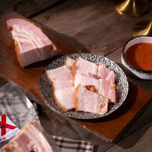 BA CHỈ XÔNG KHÓI- LAVROV là một sản phẩm thịt xông khói đặc biệt từ Công ty CP Chế biến Nông sản Việt Xanh. Được chế biến theo phương pháp truyền thống của Nga, sản phẩm này mang đến hương vị độc đáo từ lá nguyệt quế và các gia vị cao cấp như tiêu đen, tiêu trắng, nhục đậu khấu, hành, tỏi. Thịt ba chỉ được xông khói tỉ mỉ, tạo nên hương thơm quyến rũ và kết cấu mềm mại, đem lại trải nghiệm ẩm thực tuyệt vời.